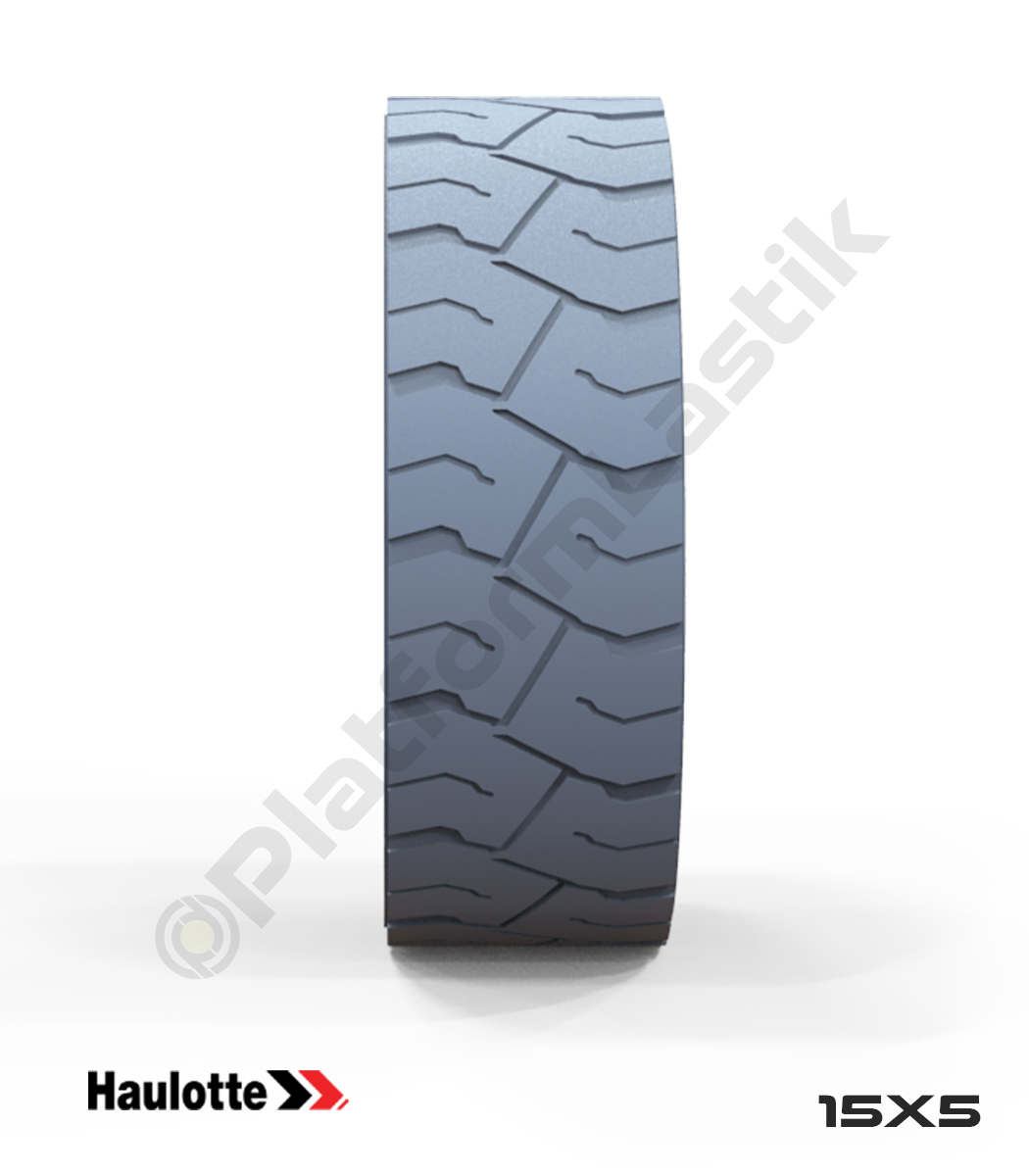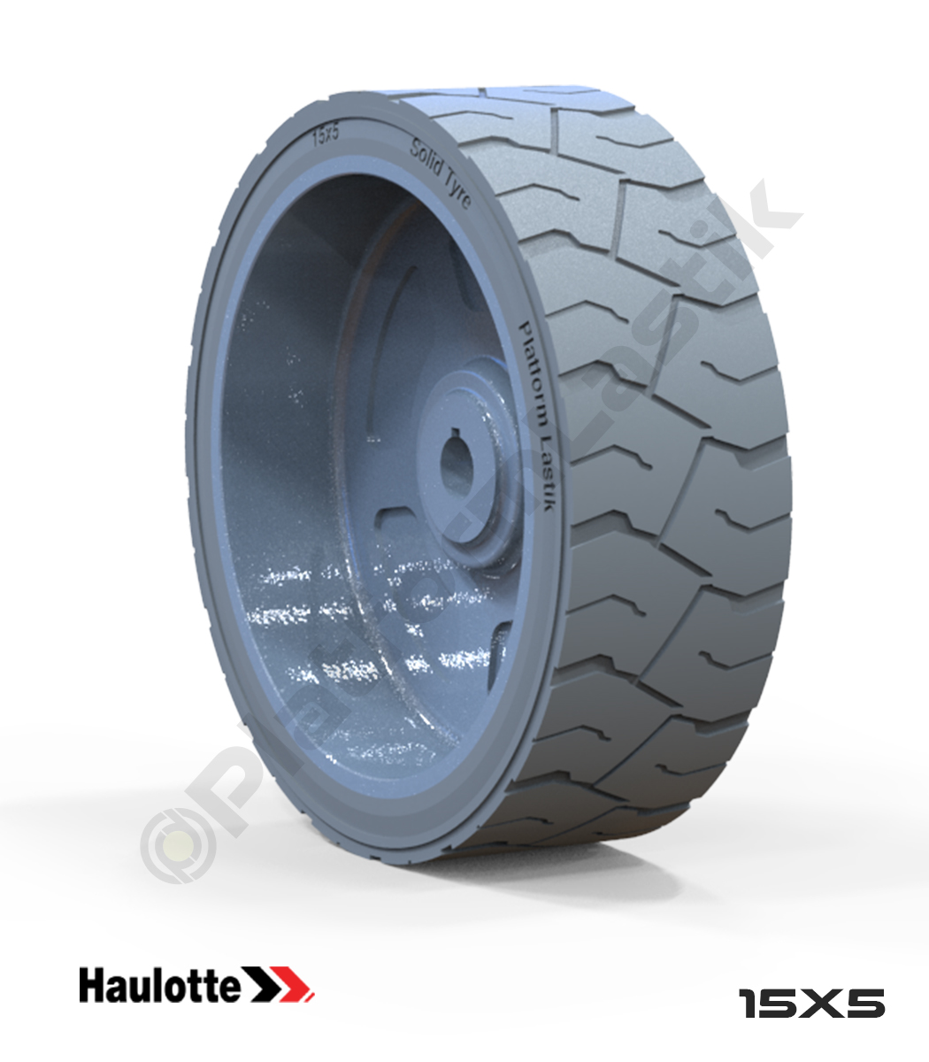 Haulotte 15×5 iz bırakmayan gri kauçuk tekerlek, zorlu çalışma koşullarında maksimum denge, zemin koruması ve uzun ömürlü performans sunar.