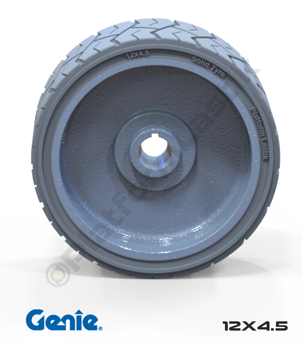 Genie makaslı platformlar için özel olarak tasarlanan bu 12×4.5 ölçülerindeki tekerlek, yüksek kaliteli gri kauçuk yapısı sayesinde hassas zeminlerde iz bırakmadan güvenle çalışma imkanı sunar. Dayanıklı gövde yapısı ve mükemmel zemin tutuşu ile operasyonel verimliliği artırırken uzun ömürlü kullanım sağlar.