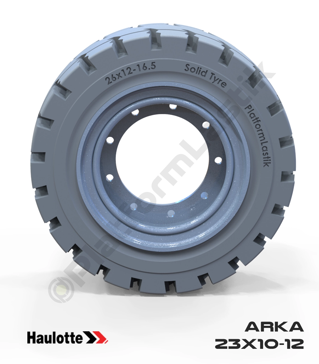 Haulotte eklemli platformların arka aksı için özel olarak üretilen 23x10-12 boyutundaki bu tekerlekler, endüstriyel iç mekanlarda üstün zemin koruması ve yüksek stabilite sunar. İz bırakmayan gri kauçuk bileşeni sayesinde hassas yüzeylerde leke oluşumunu tamamen önleyerek temiz bir çalışma ortamı sağlar. Dayanıklı yapısıyla operasyonel güvenliği ve verimliliği en üst düzeye çıkarır.