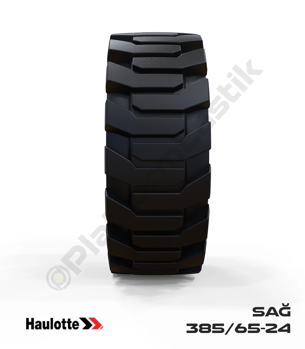 Haulotte Pro serisi sağ aks için geliştirilen 385/65-24 siyah kauçuk tekerlek, en zorlu arazi şartlarında üstün çekiş gücü sağlar. Güçlendirilmiş karkas yapısı ve derin dişli yüzeyi sayesinde engebeli zeminlerde platformun dengesini korur. Şantiye ortamlarında aşınmaya karşı maksimum direnç göstererek operasyonel verimliliği en üst düzeye taşır.
